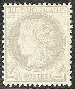 | * | 496 | CERES 1871-1875. * No 52a, gris jaunâtre. - TB (cote Yvert) | 1 | 525€ | 60€ | vendu 86€ | |