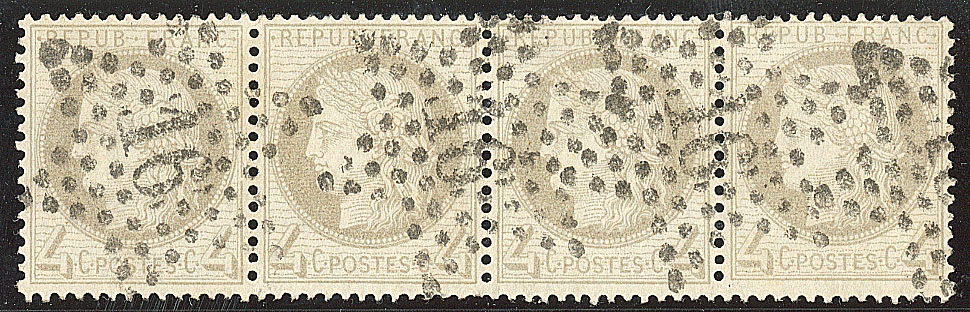 | 492 | CERES 1871-1875.No 52, bande de quatre obl étoile 16. - TB | 4 | - | 100€ | vendu 122€ | ||