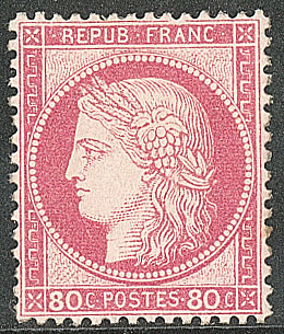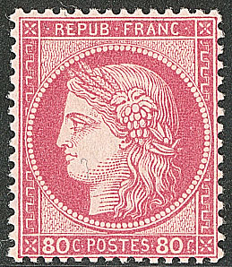 | * | 511 | CERES 1871-1875. * No 57, rose, quasiment **, très frais. - TB (cote Yvert) | 1 | 1300€ | 250€ | vendu 250€ | |