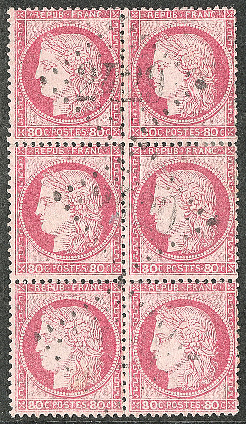| 493 | CERES 1871-1875.No 52, bloc de six, étoile "8". - TB | 6 | - | 200€ | - | ||