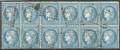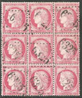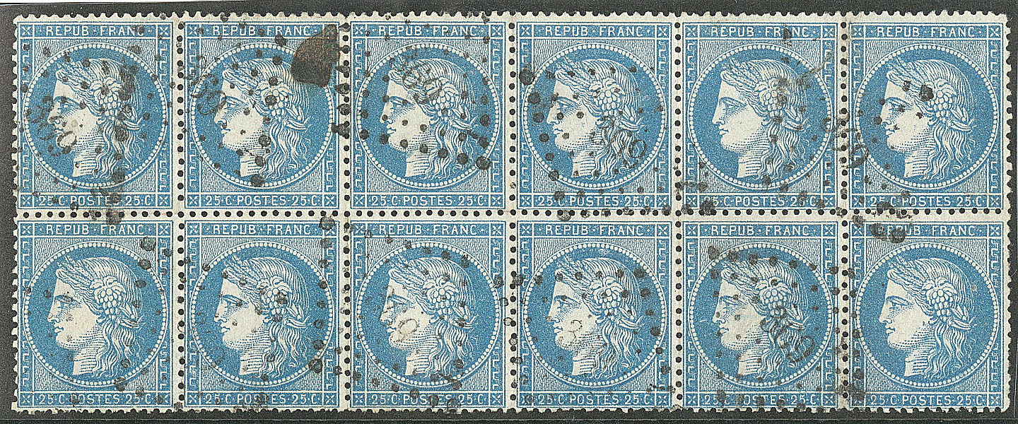| 527 | CERES 1871-1875.No 60A, bloc de douze (légers défauts), obl pgc 369 Beaucaire. - TB | 12 | - | 100€ | vendu 152€ | ||