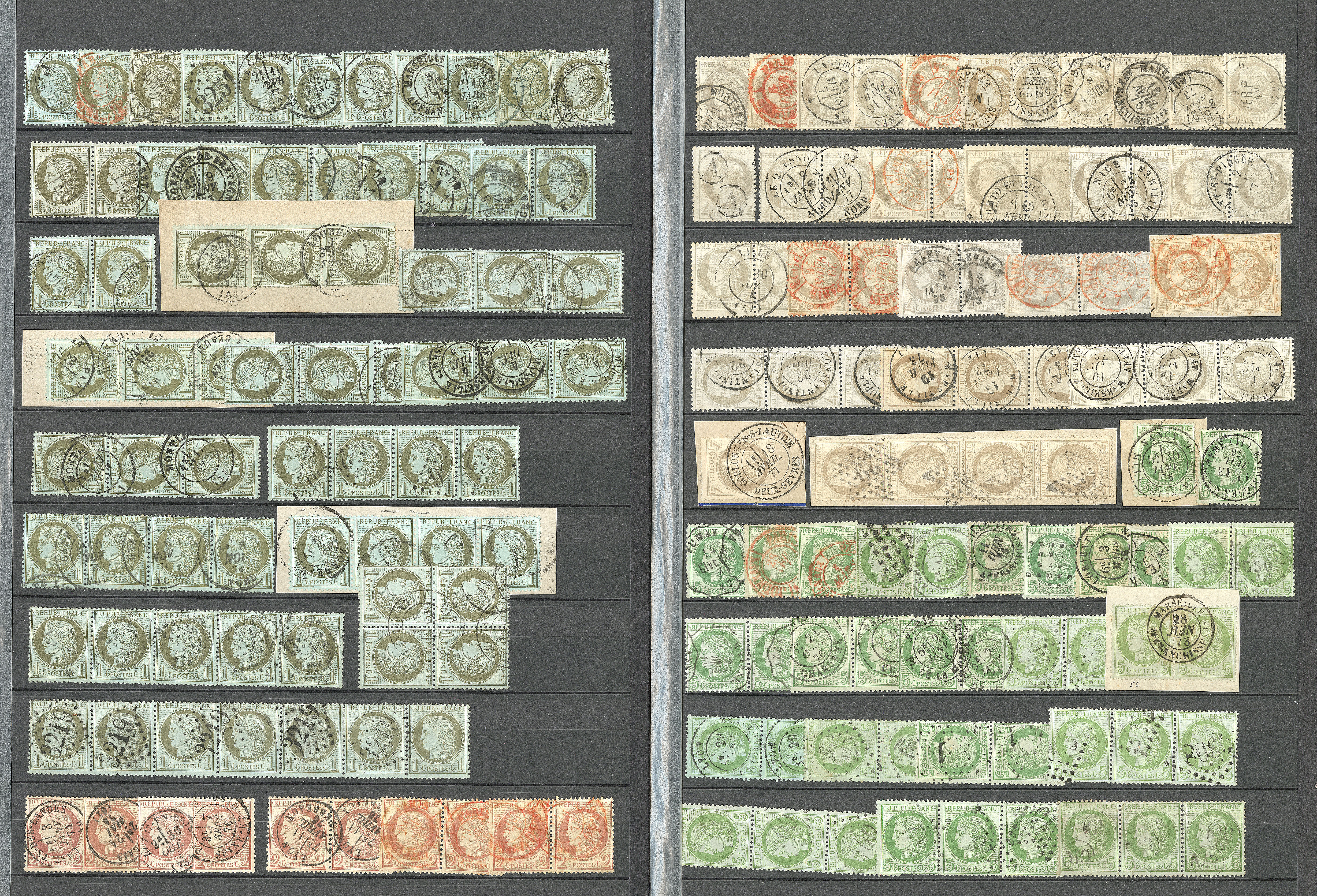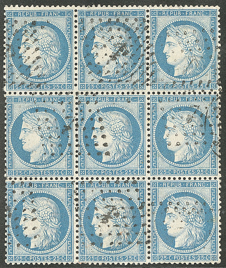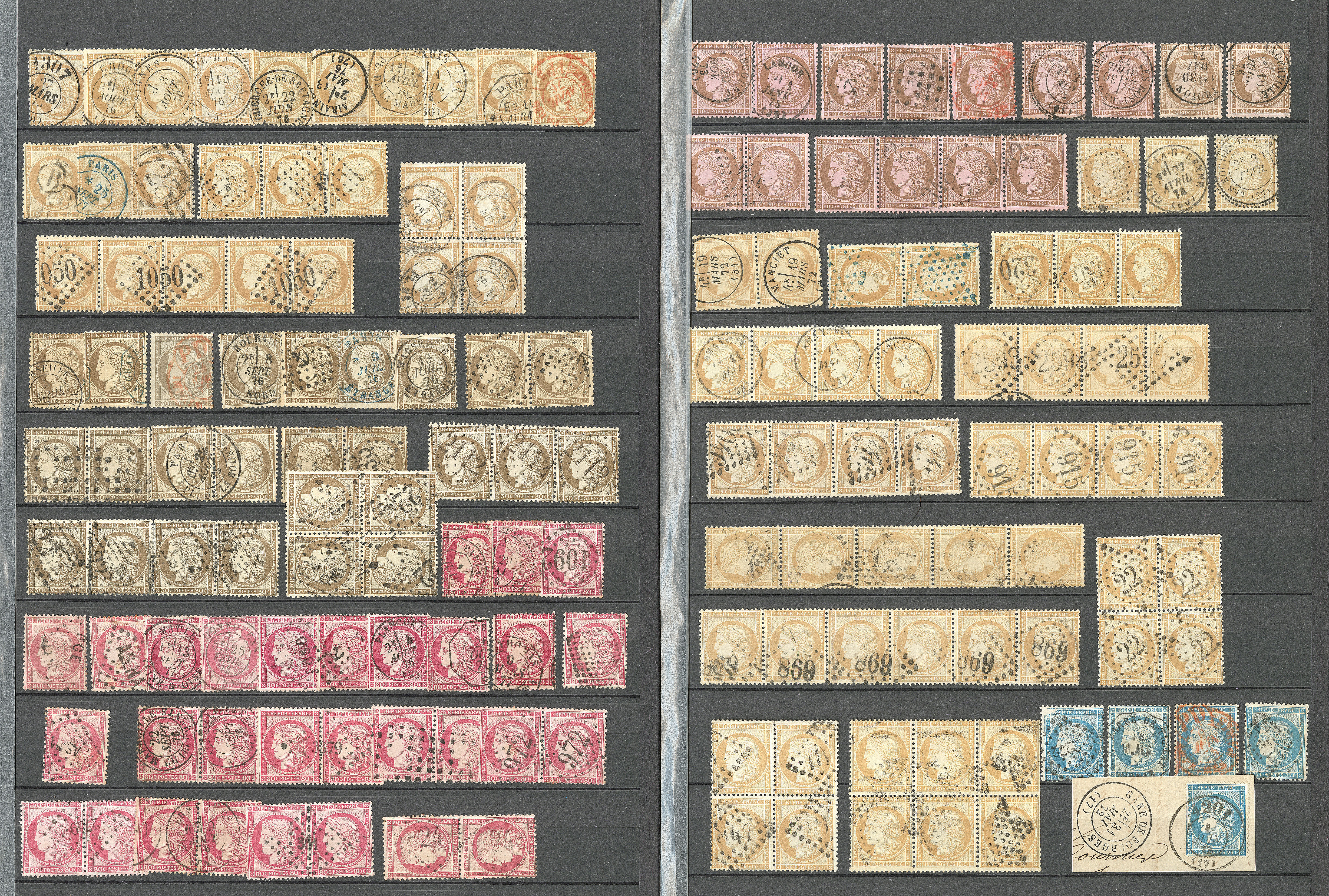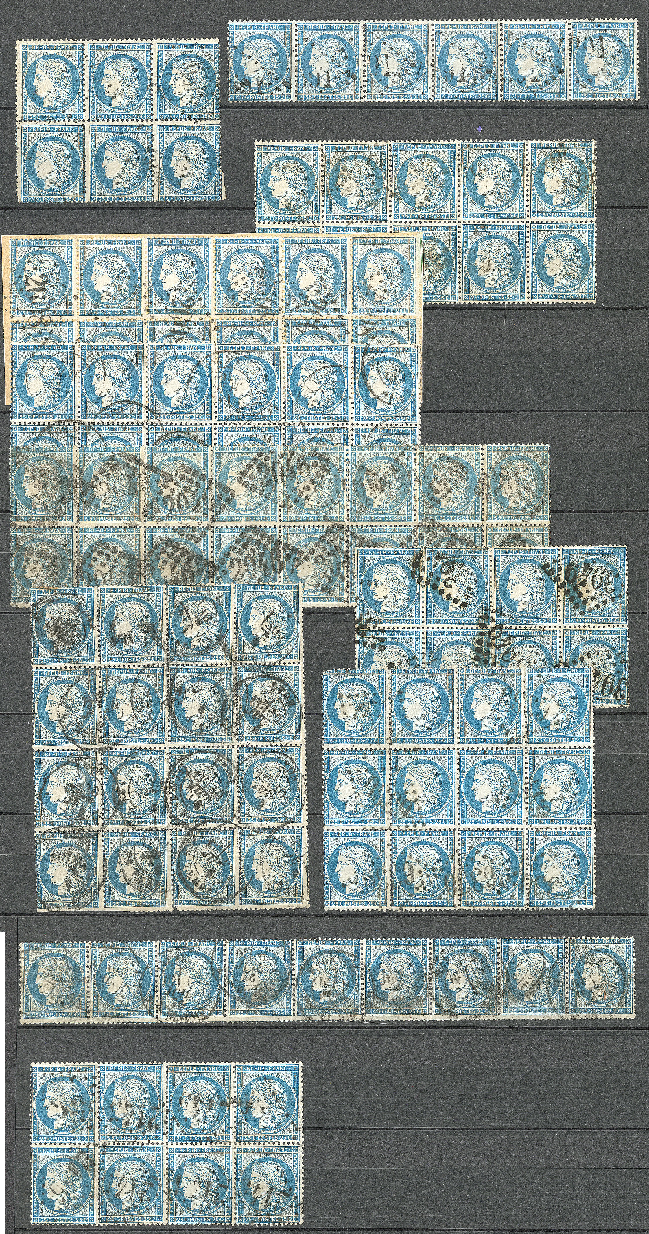 | 537 | CERES 1871-1875.Collection. No 60, plusieurs milliers d'ex pour planchage en majorité classés, nuances et obl diverses, en 7 albums, tous états | - | 350€ | vendu 1061€ | |||