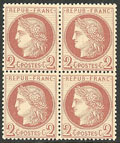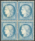 | ** | 490 | CERES 1871-1875. ** No 52, bloc de quatre (un ex *), très frais et centré. - TB (cote Yvert) | 4 | 2250€ | 400€ | - | |