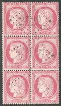 | 531 | CERES 1871-1875.No 60C, bloc de six obl gc 1686 Graçay. - TB | 6 | - | 80€ | - | ||