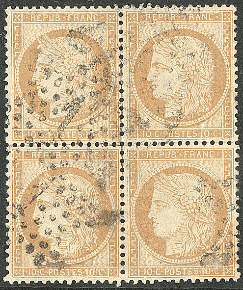 | 334 | SIEGE.Etoile "1". No 36, bloc de quatre, bien centré. - TB (cote Yvert) | 4 | 1200€ | 200€ | - | ||