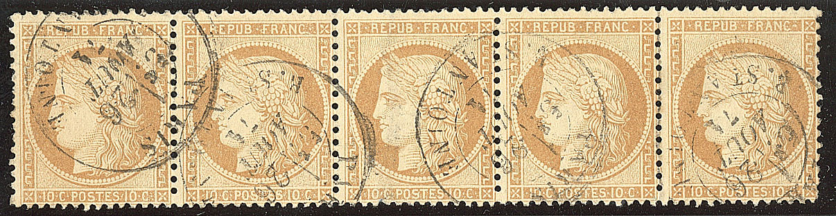 | 336 | SIEGE.Cad 17 rue St Antoine. No 36, bande de cinq. - TB (cote Yvert) | 5 | 1100€ | 200€ | - | ||
