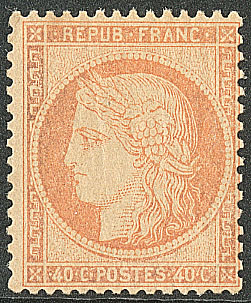 | ** | 340 | SIEGE. ** No 38, orange, très frais. - TB (cote Yvert) | 1 | 800€ | 200€ | vendu 643€ | |