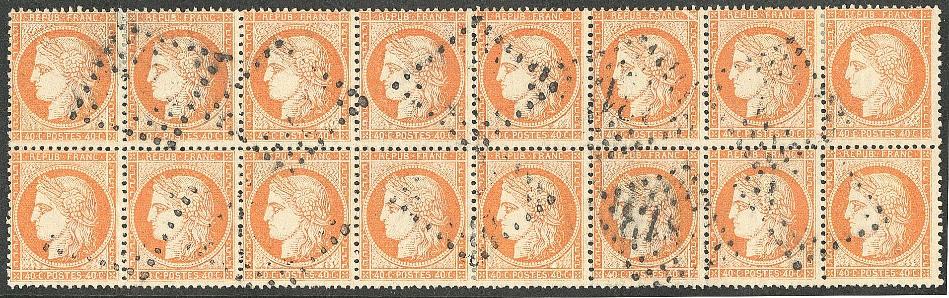| 344 | SIEGE.No 38, bloc de seize dont obl losange évidé sur 14 ex et un ex variété d'impression. - TB | 16 | - | 300€ | vendu 338€ | ||