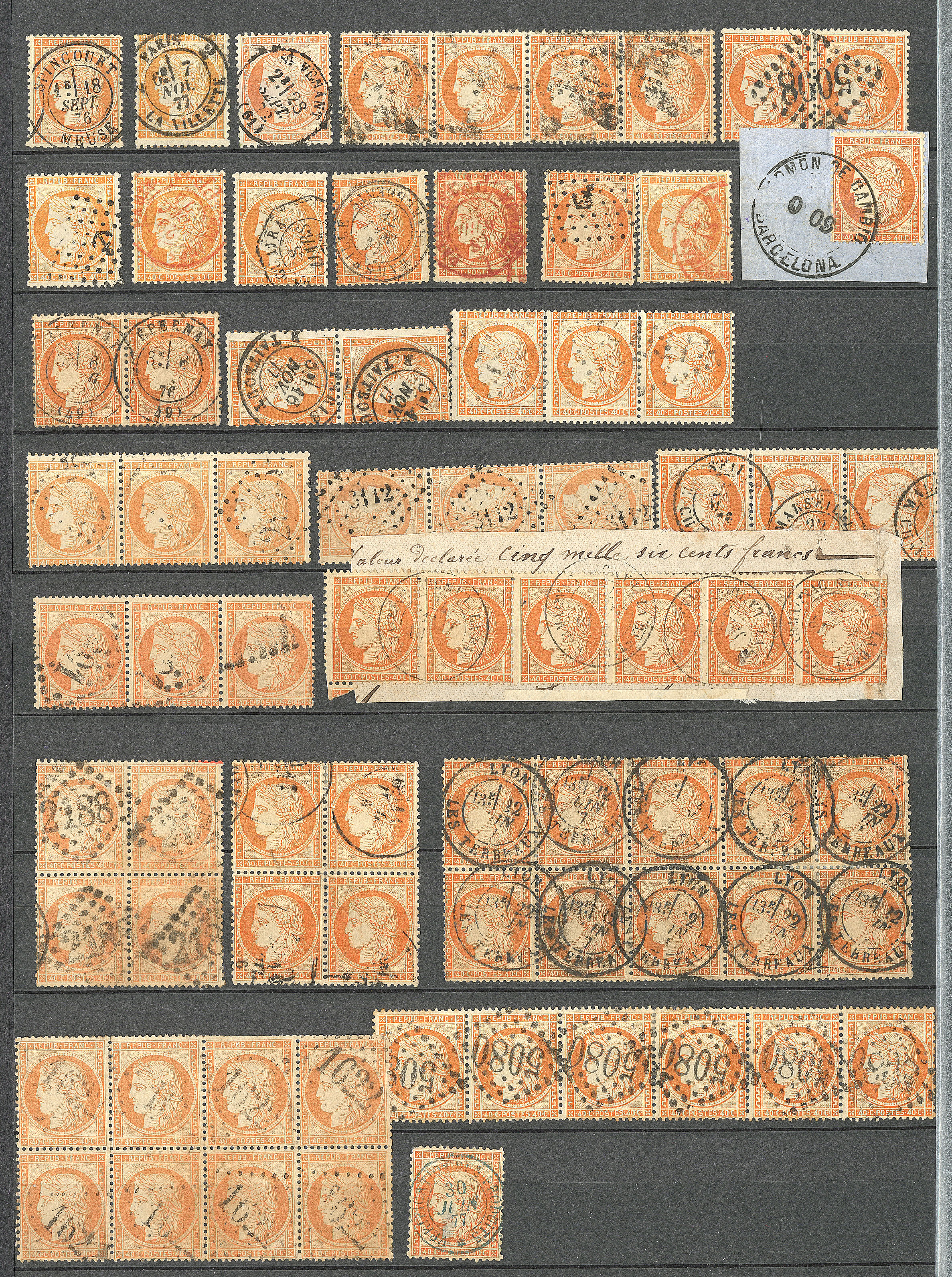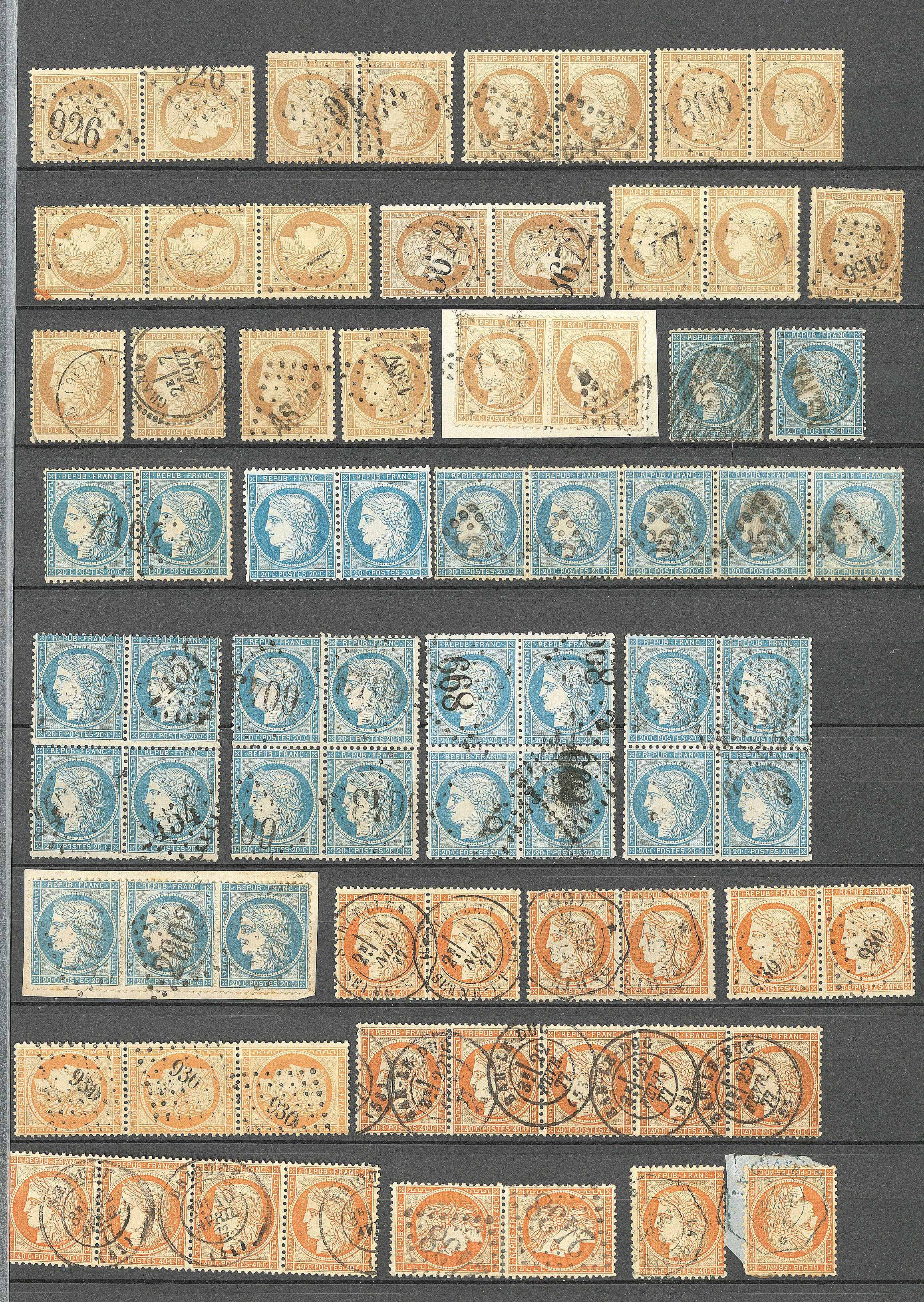 | 346 | SIEGE.Lot. 1870, entre les N°36 à 38, dont paires, bandes et blocs, obl choisies. - TB, B ou pd (cote Yvert) | 149 | 5000€ | 400€ | vendu 550€ |