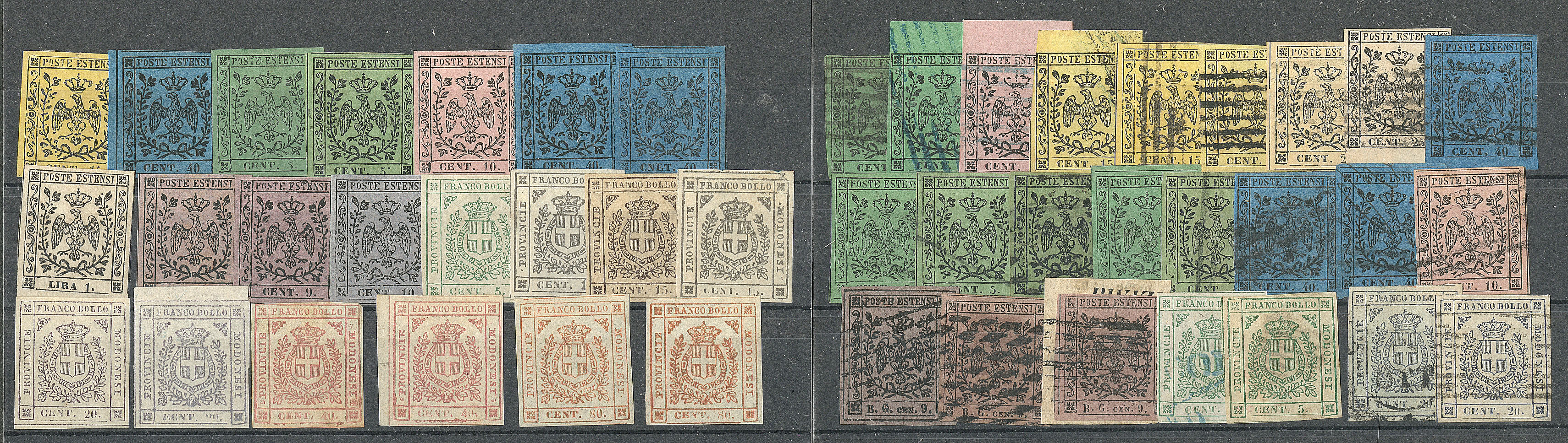 | 2490 | MODENE.Modène. Collection 1852-1859, 24 ex obl diverses et 21 ex * ou (*), nuances diverses. - TB, B ou pd | 45 | - | 300€ | vendu 590€ |