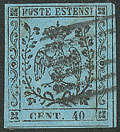 | 2483 | MODENE.Modène. No 5a, bleu ciel. - TB (cote Yvert) | 1 | 1500€ | 200€ | vendu 200€ | ||