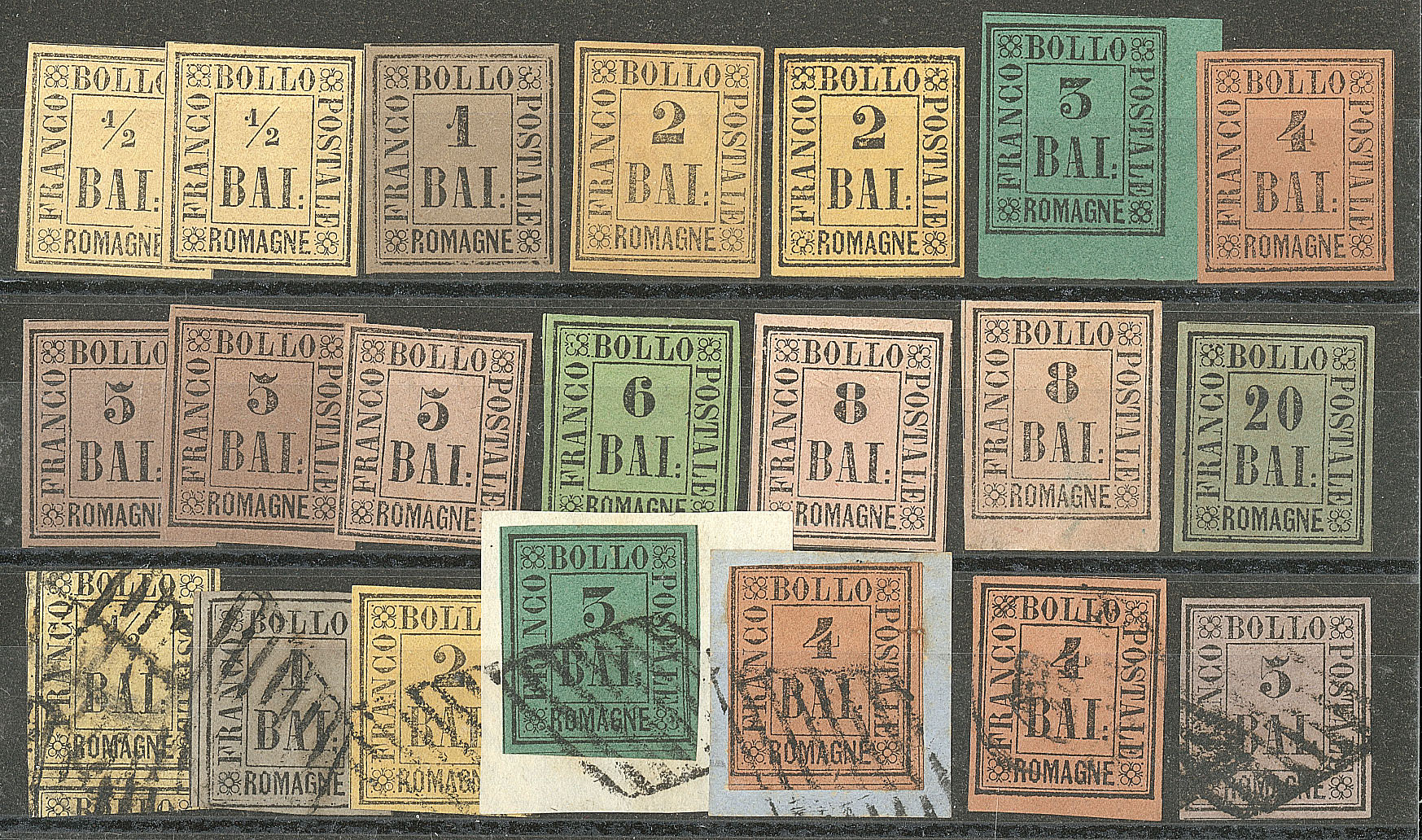 ROMAGNE. * Romagne. Collection 1859, 21 ex entre les N°1 et 9, dont 4b et 7 et sept obl. - TB ou B