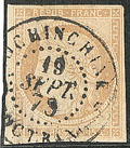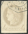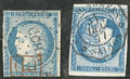 1705 "COCHINCHINE. Précurseurs. CG 36 obl cad Rachjia" et 38 obl Saïgon central en bleu. - TB (cote Yvert)"" 2 520€ 130€ vendu