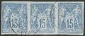 1706 COCHINCHINE. Précurseurs. CG 41 bande de trois obl cad Mytho (frappe faible). - TB (cote Yvert) 3 - 150€ -