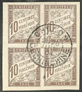 1709 "COCHINCHINE. Précurseurs. Taxe. CG 19, bloc de quatre cdf obl cad central Cholon", superbe (cote Yvert)"" 4 - 100€ vendu