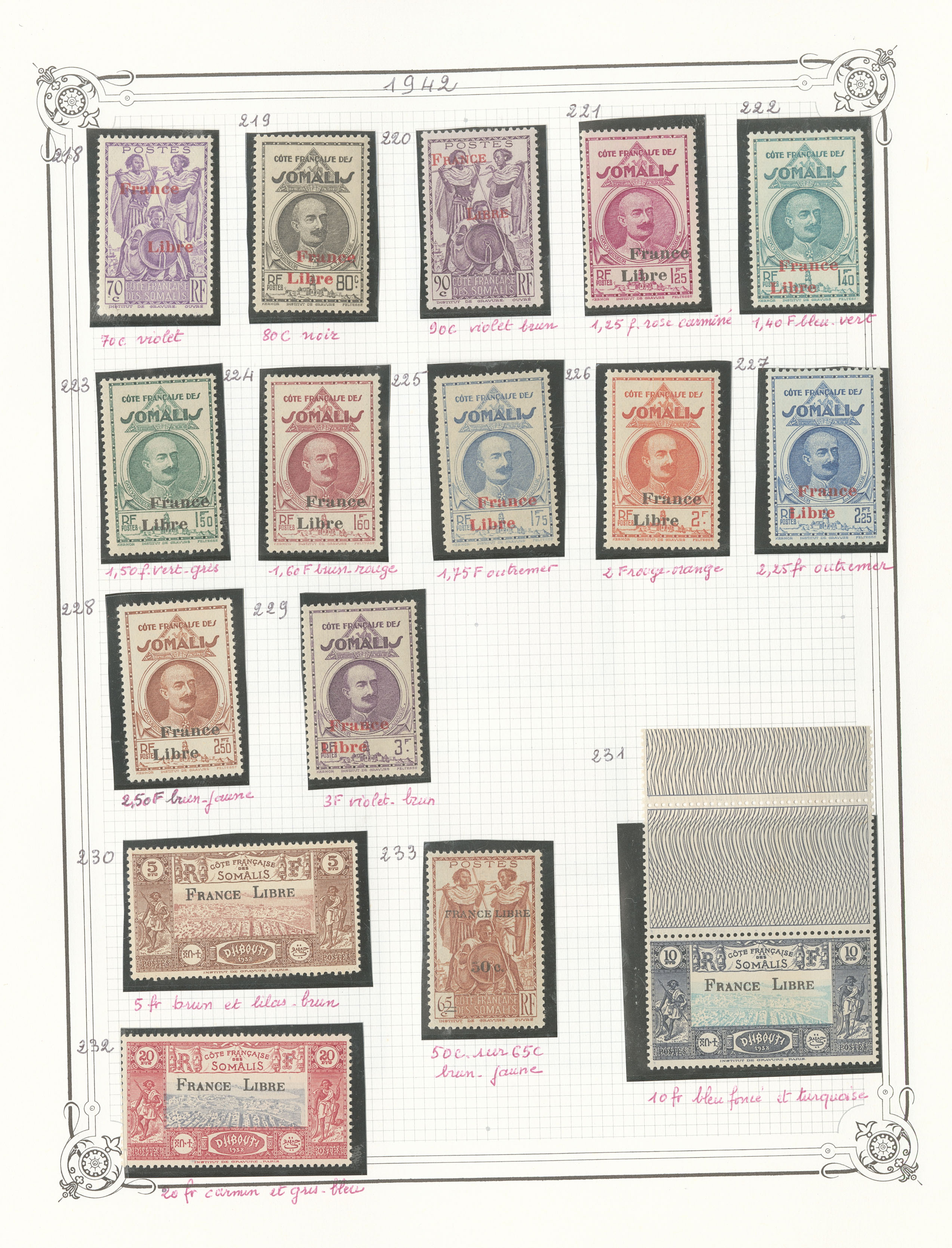 COTE FRANÇAISE DES SOMALIS. * Collection. 1894-1963 (Poste, PA, Taxe), valeurs moyennes et séries complètes, complète après le N°35, des ex obl et des variétés. - TB (cote Yvert) plus de photos :