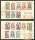 COTE FRANÇAISE DES SOMALIS. Lettre. France-Libre. Nos 195 + 198 + 199 + 201 + 205 + 213 + 216 + 219 + 220(2) + 222 + 224 à 228, sur 2 enveloppes recommandées pour NY, avec censure et arrivée. - TB (cote Yvert) |