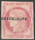 "GUADELOUPE. (*) GNADELOUPE". No 13d, défauts, B d'aspect. - R (cote Yvert)"" |