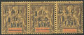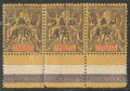 "GUADELOUPE. ** Surcharge inversée et 1" renversé. Nos 51cd + 51g + 51i, formant bande de trois (pos. 23-25), très frais. - TB. - R (cote Yvert)"" plus de photos :