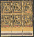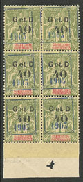 "GUADELOUPE. * 1" renversé. Nos 51Ca (def) + 51Ba + 51c(2) + 51g + 51o, formant bloc de six bdf. - TB (cote Yvert)"" |