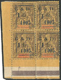 "GUADELOUPE. * 1" renversé. Nos 51oa + 51g(3), formant bloc de quatre cdf. - TB (cote Yvert)"" |