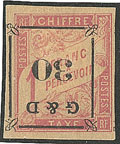 "GUADELOUPE. * Taxe. Surcharge renversée et G" partiellement absent. No 13r, larges charnières mais très frais et TB . - R (cote Yvert)"" plus de photos :