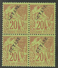 GUYANE. ** No 22, bloc de quatre, adhérences de couleur au verso mais TB (cote Yvert) |
