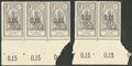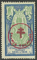 "INDE. ** Surcharge 0,15" au milieu du timbre. No 25A, bande de trois bdf + paire bdf, qqs pd mais TB d'aspect (cote Yvert)"" |