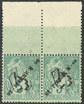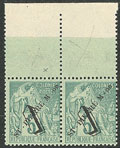 SAINT-PIERRE-ET-MIQUELON. Surcharge renversée. No 27a, en paire TAN. - TB. - R (cote Yvert) plus de photos :