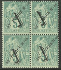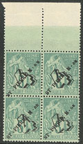 SAINT-PIERRE-ET-MIQUELON. * Surchargé en 2 fois. No 41a, bloc de quatre bdf dont un ex **, très frais. - TB (cote Yvert) |