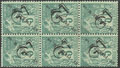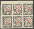 "SAINT-PIERRE-ET-MIQUELON. * Sans tiret après M". No 49f case 31, tenant à normaux dans un bloc de six (3 ex **). - TB (cote Yvert)"" |