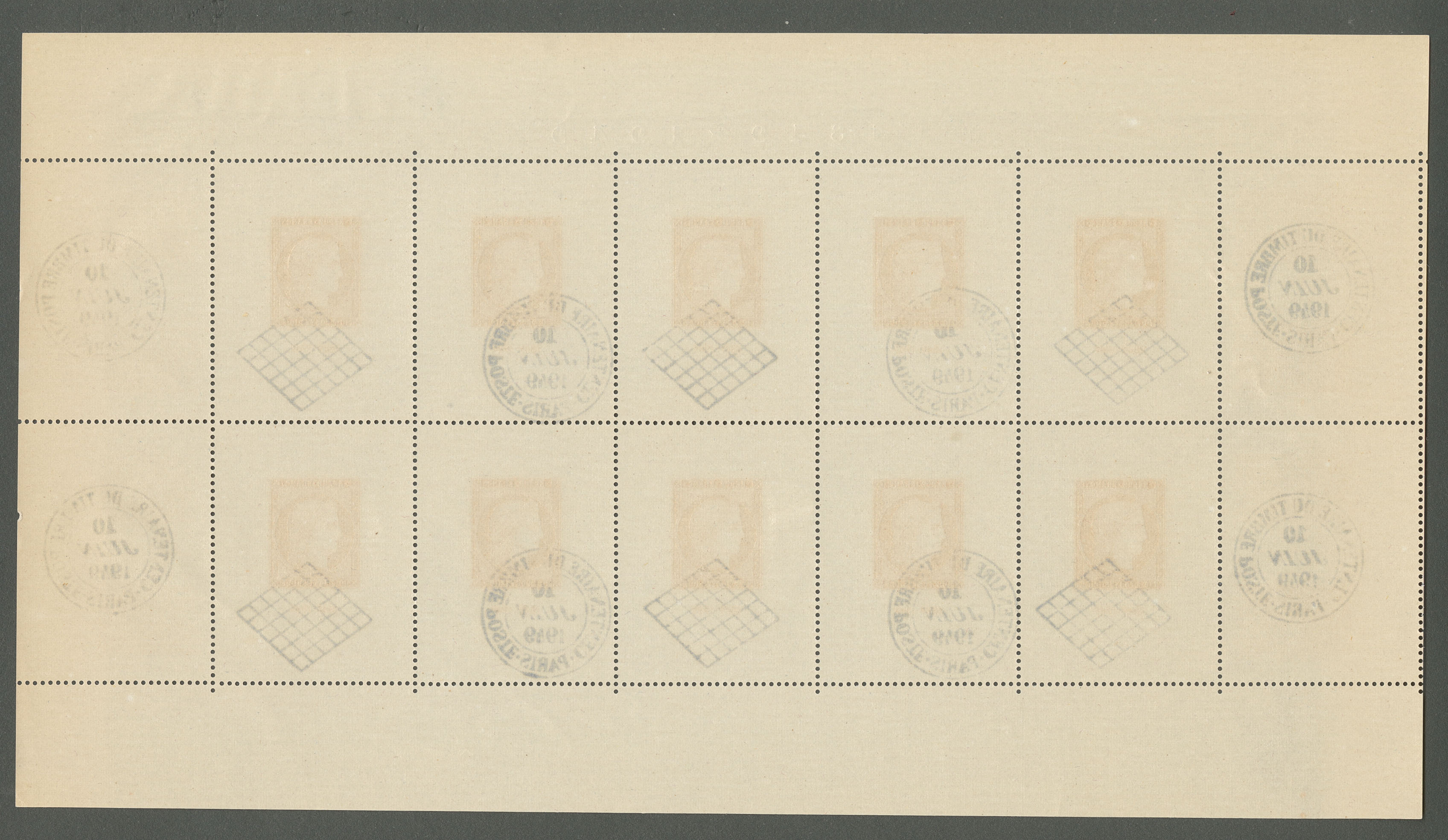 BLOCS & FEUILLETS. ** Paris. Oblitéré hors timbres. No 1b, paille dans le papier et infimes froissures. - TB (cote Yvert) |