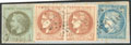 BORDEAUX. No 41B, bande de trois, trois voisins, infime pelurage sur l'ex central mais TB (cote Yvert) |