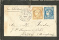 BORDEAUX. Lettre. Nos 46B + 36, sur enveloppe de Versailles pour Jersey 21 Mai 71 (période de la Commune). - TB (cote Yvert) |