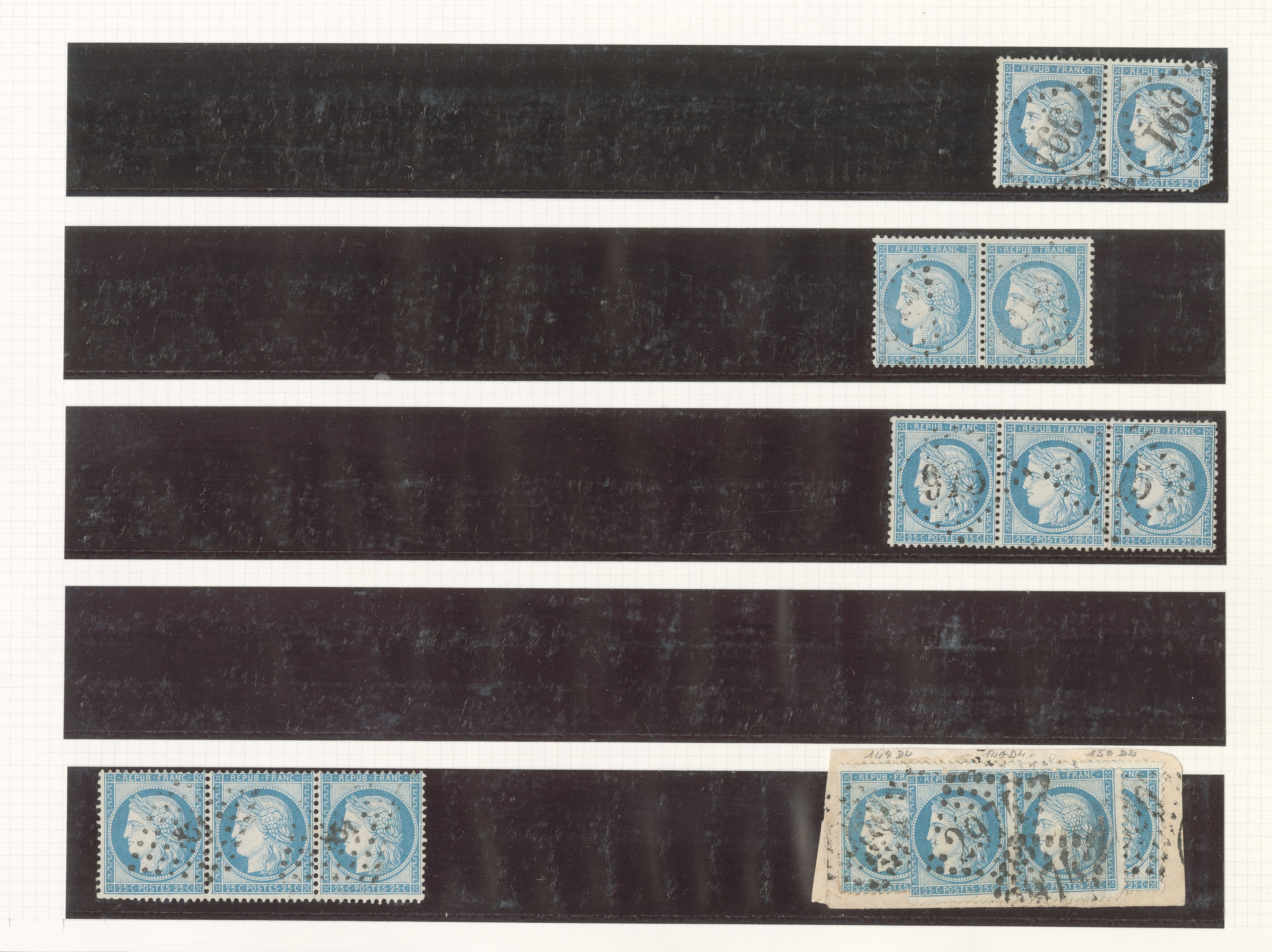 CERES 1871-1875. Grande cassure. No 60A, bel ensemble de 110 ex détachés et 7 plis, entre les N°141A2 et 150A2, dont doubles, en 1 classeur. - TB, B ou pd (cote Yvert) plus de photos :