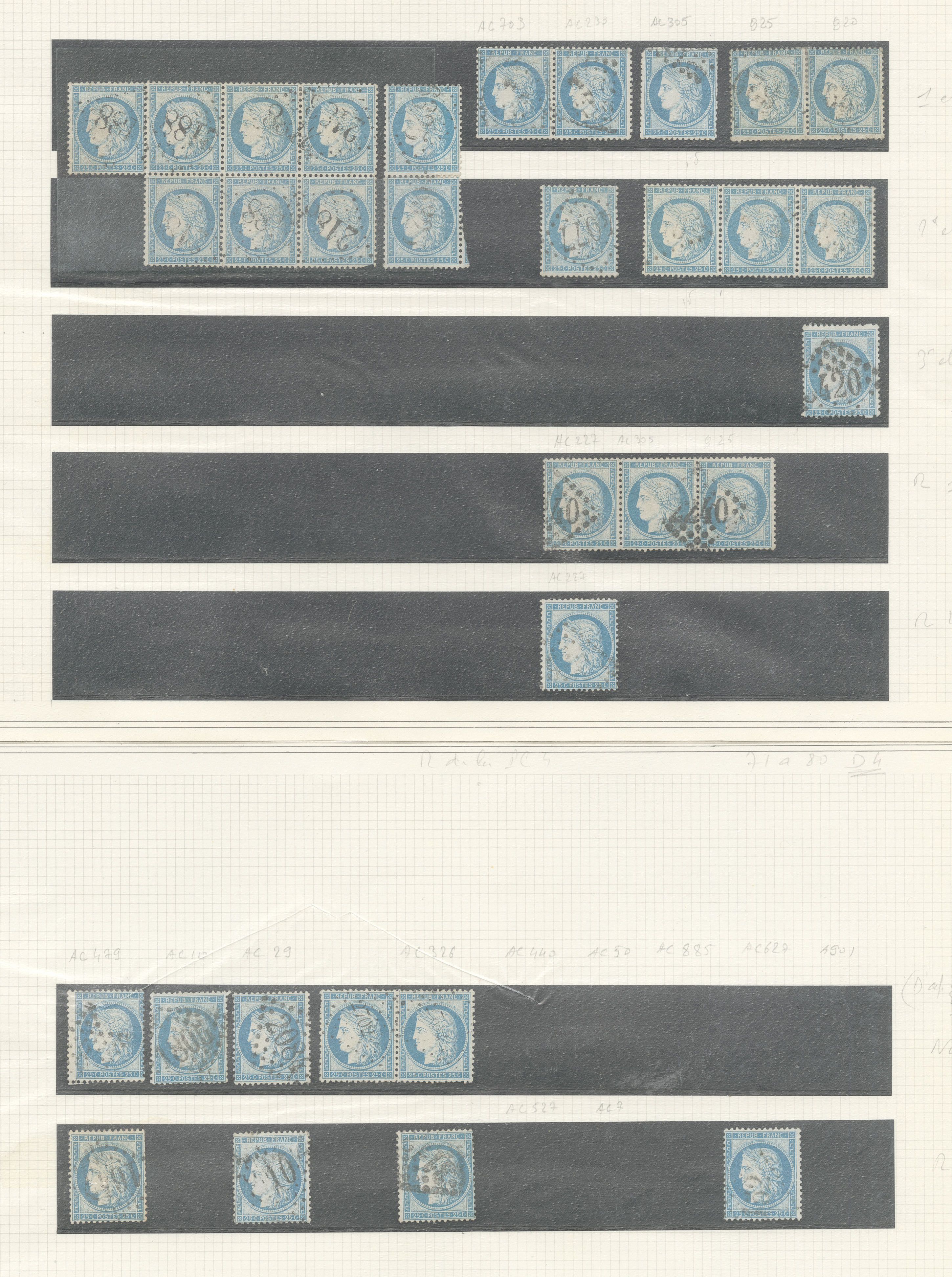 CERES 1871-1875. Planchage. Panneaux G1 et G3. No 60A, ensemble assez complet, obl diverses. - TB (cote Yvert) plus de photos :