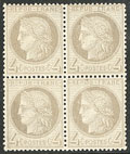 CERES 1871-1875. ** No 52, bloc de quatre (un ex *), froissure de gomme sur un ex. - TB (cote Yvert) |