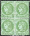 CERES 1871-1875. ** No 53, vert-jaune sur azuré, bloc de quatre (2 ex *), très frais. - TB (cote Yvert) |