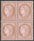 CERES 1871-1875. ** No 58, brun sur rose, bloc de quatre (2 ex *), très frais. - TB (cote Yvert) |