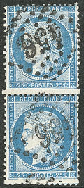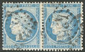 CERES 1871-1875. Types II et III se tenant. Panneau G5. No 60Cb, paire cases 92 et 93. - TB. - R (cote Yvert) |