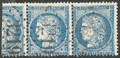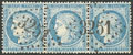 CERES 1871-1875. Types II et III se tenant. Panneau G5. No 60Cb, bande de trois, cases 91, 92 et 93, superbes. - R (cote Yvert) |