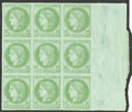 CERES 1871-1875. ** Non dentelés. Nos 50c, bloc de 15 ex bdf, 7 voisins. - TB (cote Yvert) plus de photos :