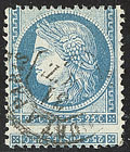 CERES 1871-1875. Retouche de la grecque inférieure droite (case 141). No 59c, obl étoile 17 sur support. - TB (N°et cote SM) |