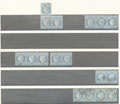 CERES 1871-1875. Types II et III se tenant. Panneau D5. No 60Cb, bande de trois cases 113, 114 et 115, pd, TB d'aspect (cote Yvert) |