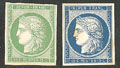 ESSAIS. (*) Cérès 1849. 15c vert et 15c bleu, papier carton. - TB (cote Yvert) |
