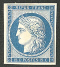ESSAIS. (*) Cérès 1849. 15c bleu, papier carton. - TB (cote Yvert) |