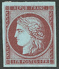 ESSAIS. (*) Cérès 1849. 1f carmin sur bleu. - TB (cote Yvert) |