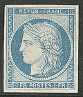 ESSAIS. (*) Cérès 1849. 1f bleu, papier pelure. - TB (cote Yvert) |