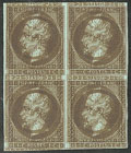 ESSAIS. (*) Cérès 1849. 20c (2 blocs de quatre jaune), 40c (2 blocs de quatre + bande de quatre) bdf, nuances diverses. - TB (cote Yvert) |