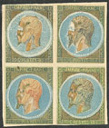 ESSAIS. (*) Cérès 1871. 5c, 7 blocs de quatre nuances diverses. - TB (cote Yvert) |